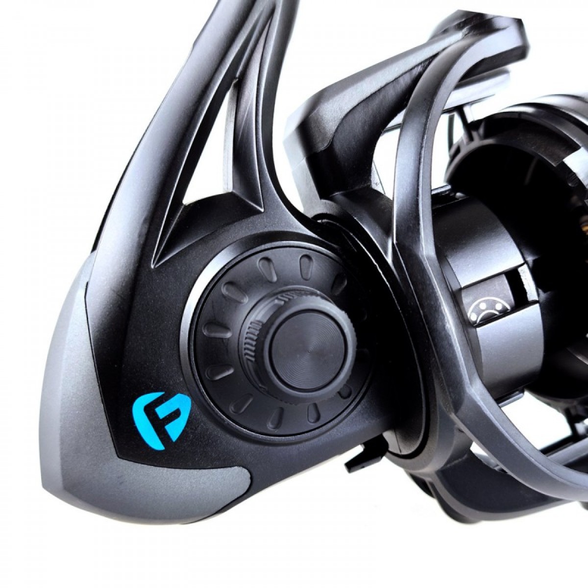 F-FISHING Aster Feeder 5500 — это катушка 2025 года,она отличается стильным и современным дизайном, что делает её привлекательной как для опытных рыболовов, так и для новичков. Катушка подходит для ловли на реках с быстрым течением, а также для рыбалки на коммерческих водоёмах. Корпус и ротор катушки изготовлены из высокопрочного пластика, что позволяет снизить вес и обеспечить баланс. Алюминиевая шпуля имеет уменьшенную ёмкость, что делает её более удобной для работы с тонкими лесками и шнурами. Конический буртик на шпуле значительно уменьшает трение и повышает дальность заброса. Круглая металлическая клипса обеспечивает надёжную фиксацию лески. Механизм катушки оснащён системой S-Curve Oscillation, которая обеспечивает качественную намотку лески. Система Anti-Twist предотвращает перекручивание лески благодаря ролику лесоукладывателя, который устойчив к протиранию и коррозии. Катушка оснащена 5 шариковыми и 1 роликовым подшипником из высококачественной стали, что обеспечивает мягкий и плавный ход. Фрикционный тормоз имеет плавную и точную регулировку, а также отличается стабильной работой. Фрезерованная алюминиевая ручка ввинчивается напрямую в главную пару, что предотвращает любые люфты. Т-образный кноб имеет мягкое резиновое покрытие и удобную форму, которая обеспечивает надёжный хват.