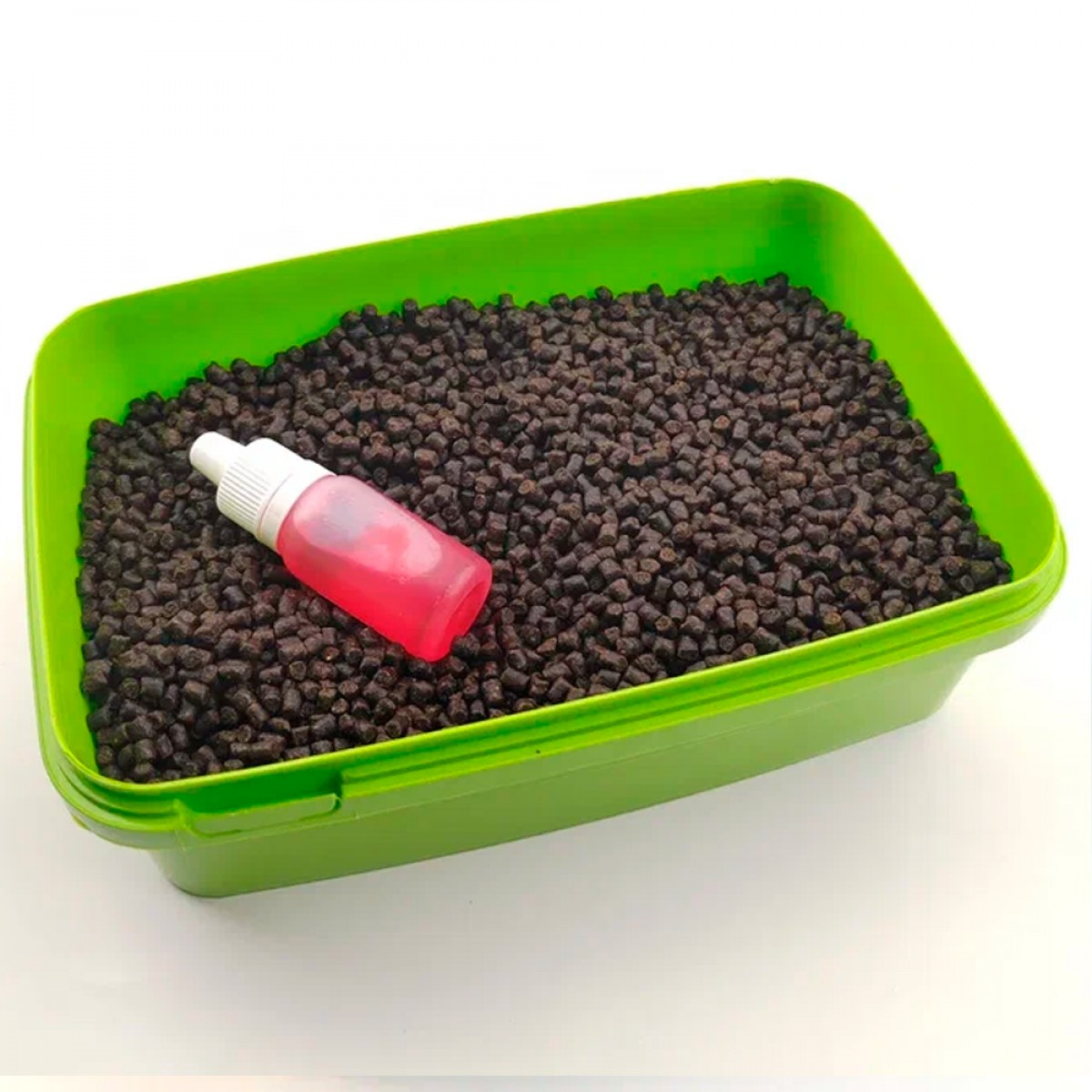 Теперь у вас все под рукой, чтобы удобно подготовить пеллетс для ловли: оптимальное количество гранул, ёмкость для замешивания и дип, чтобы при необходимости усилить аттрактивность насадки.