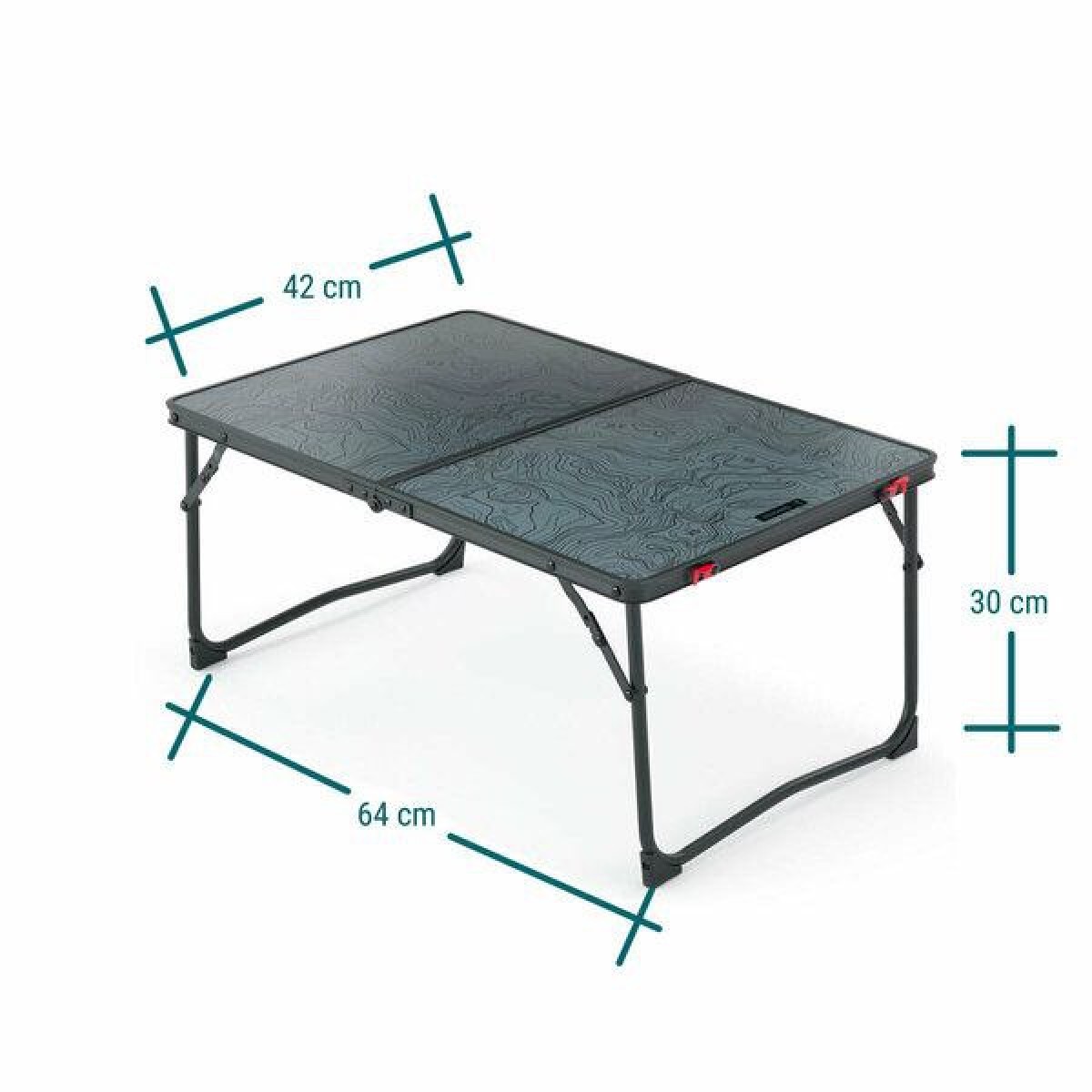 Кемпинговый низкий стол Quechua MH100 для 2 человек - размер 64 х 42 х 30 см, макс. нагрузка до 50 кг, складной. Цвет темно-серый