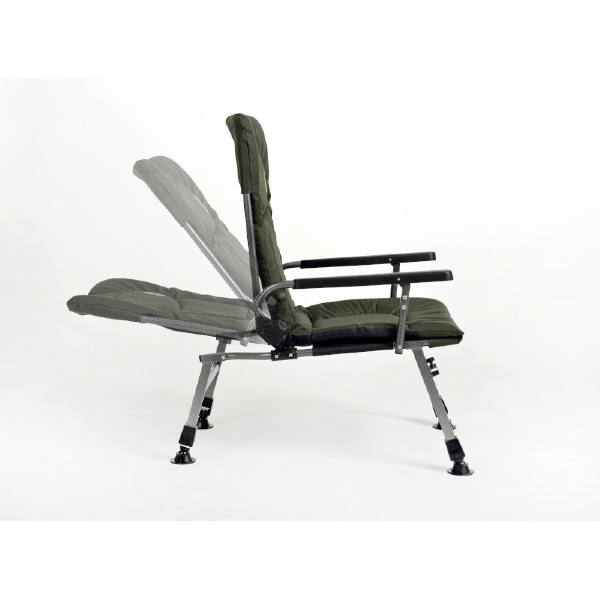 Регулируемые ножки позволяют приспособить кресло к рельефу местности, а также регулируемой спинкой обеспечивается удобное сидячее положение. Оно имеет подлокотники. Кресло легко и быстро раскладывается и собирается. Столик и держатель для удилища можно разместить с удобной для Вас стороны. Любой из этих элементов можно отдельно демонтировать.