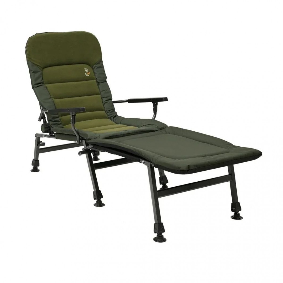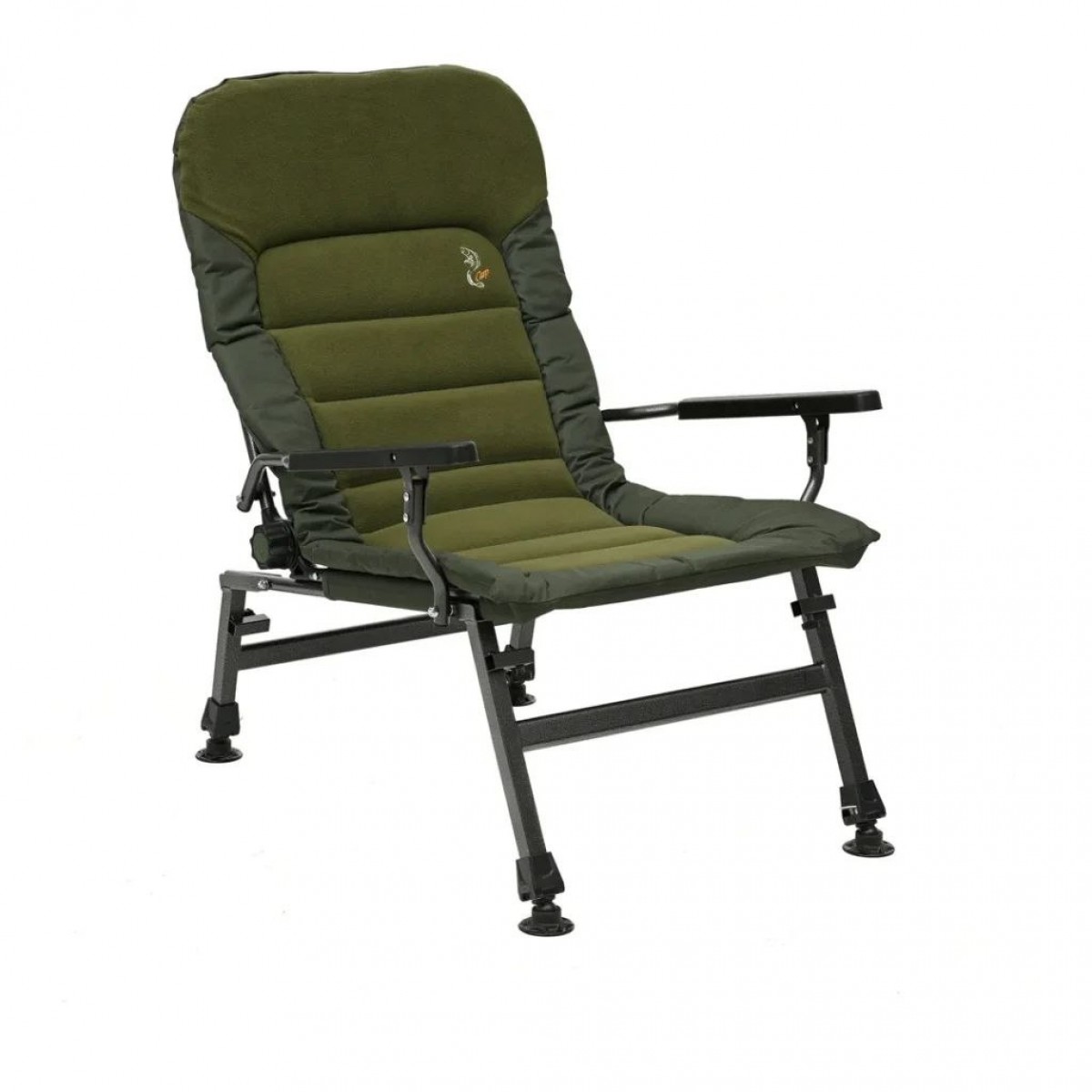 Кресло FK6 - это рыболовное кресло создано для требовательных пользователей, которые ценят высокий комфорт и удобство. Кресло отличается новой усиленной конструкцией (выдерживает постоянную нагрузку в 150 кг), широким, очень удобным сидением, высокой регулируемой спинкой (регулировка в лежачее положение). Каждая ножка регулируется отдельно, что позволяет установить его на неровной поверхности, на конце ножек широкие наконечники для мягкого грунта. Кресло оснащено системой крепления подставки для ног (опция), очень удобными подлокотниками, покрытыми прочными пластиковыми накладками. Сиденье выполнено из высококачественного износостойкого материала, дополнительная внутренняя вспененная подкладка 3 см. Очень удобный подголовник с вспененным материалом, отделенным зелёным, приятным на ощупь флисом. Всё это идеально подходит для длительных рыбацких поездок.