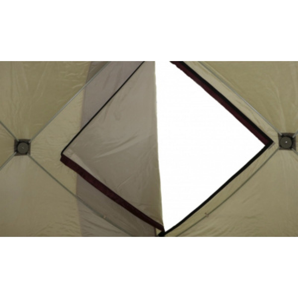 Комфорт. Высота от пола до потолка 1900 мм позволяет ходить внутри в полный рост. Два отдельных входа позволяют перемещаться, не мешая друг другу, вентиляционные клапаны регулируют приток/отток воздуха, настенные карманы для хранения документов, телефона, фонарика и две потолочные полки для рыболовного снаряжения позволяют комфортно разместить все вещи. Изнутри стены отделаны светлой тканью — в ночное время сохраняется нормальная видимость.